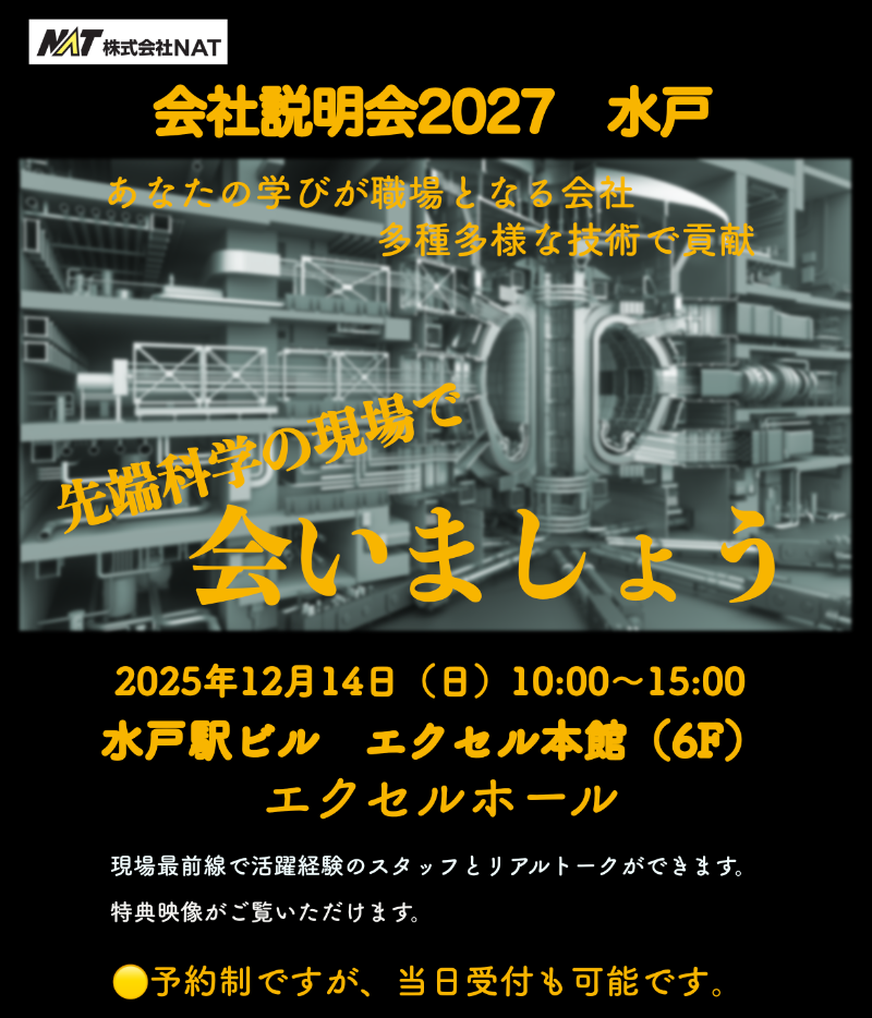 説明会では、現場の最前線で活躍する社員や豊富な経験を持つスタッフが、NATでの働き方やキャリアの可能性について、リアルな声でお伝えします。
